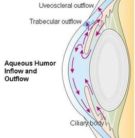 A normal eye produces fluid/aqueous humor to bring in Oxigen (O2) and nutrients to nourish the structure inside the eye. Then the waste fluid is drained out of the eye through the angle of the eye (the drainage canals are at the peripheral where the iris and cornea meet).